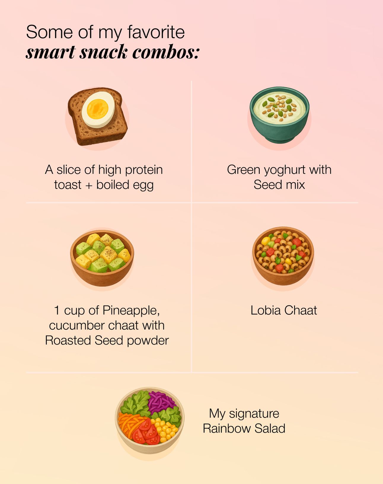 Think of your snack like a mini meal: it should keep you full, not spike and crash.
