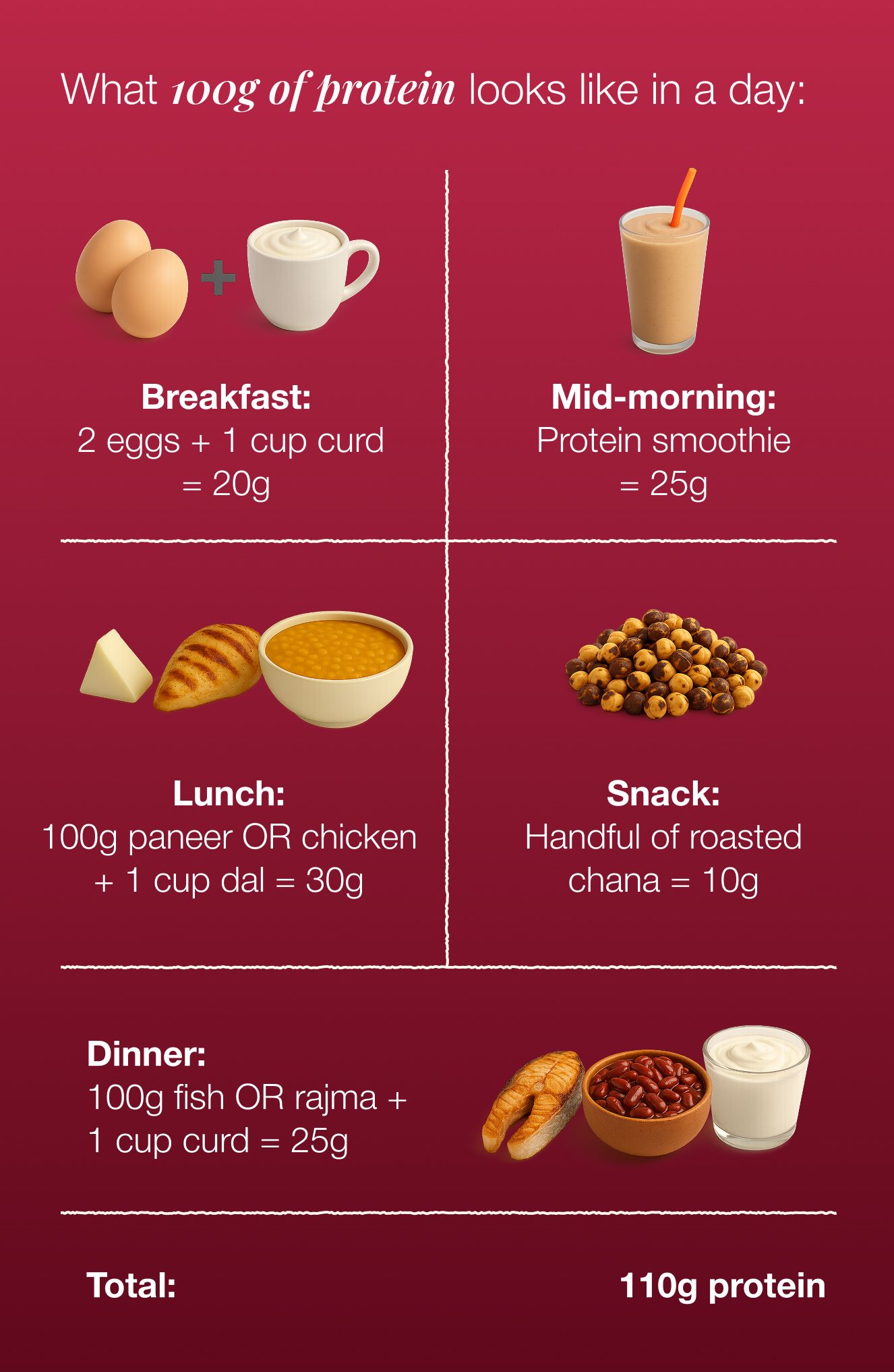 You need at least 1.6-2g of protein per kg of body weight when you're trying to lose fat. For a 60kg woman, that's 96-120g per day.