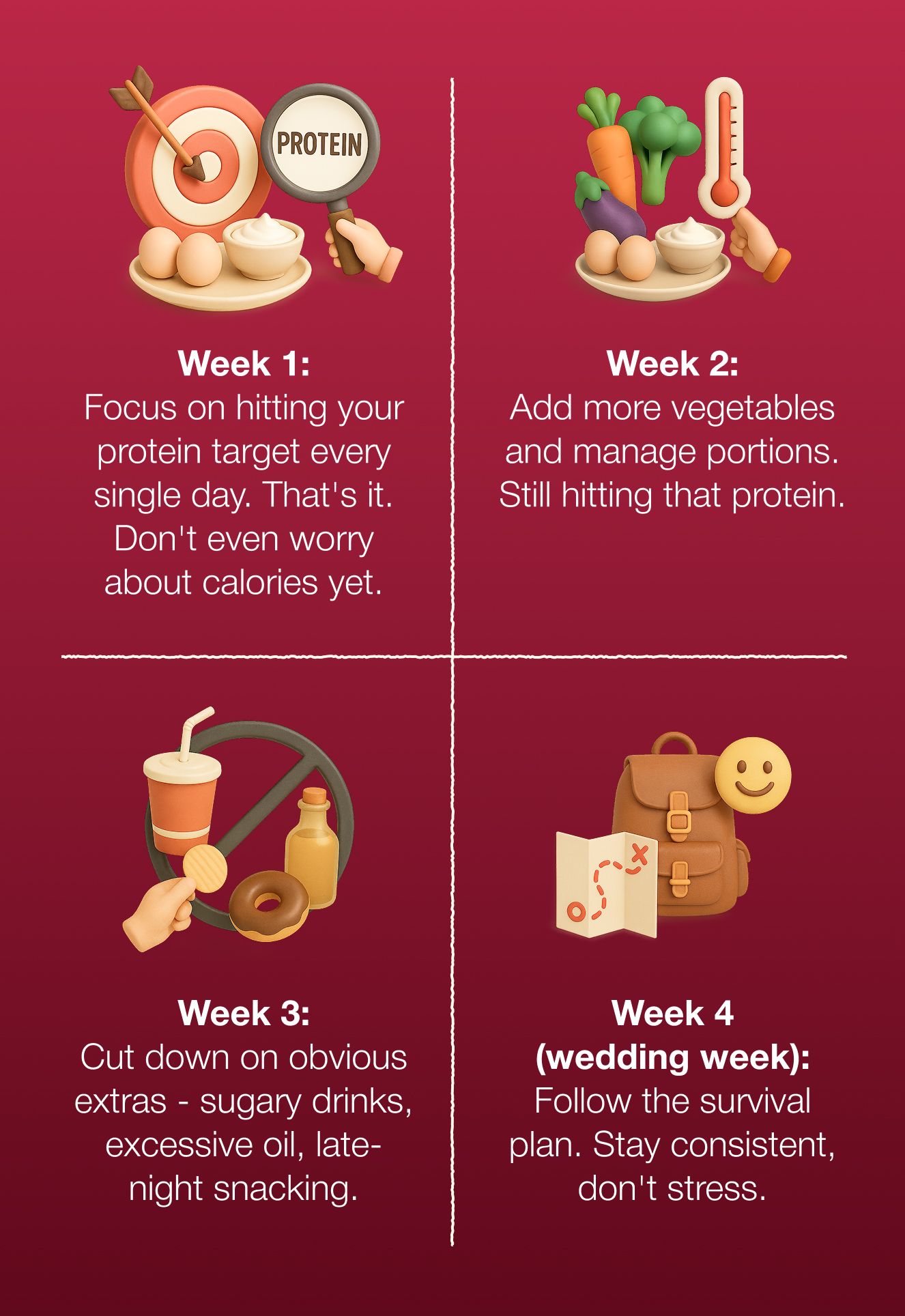 The ones who feel and look their best on the wedding day aren't the ones who starved themselves. They're the ones who ate enough protein, stayed consistent, managed their stress, and trusted the process.